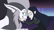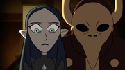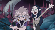 Afterward leading Luz and King to an elevator that leads to Eda, Lilith intends to remain in the Emperor'south Coven, but is caught past Emperor Belos. She and Male monarch are thrown into the aforementioned cage as Eda to be petrified. Eda, in a fit of rage, is nigh to tear Lilith apart, but King stops her and explains that Lilith betrayed the Emperor to save Eda. But as the motorcar is about to begin the petrification procedure, Eda shields Lilith and King, and the three are saved by Luz before Eda tin be fully petrified. Lilith, Eda, Luz, King, and Owlbert all make it to the Owl House safely, though at this betoken, no amount of elixir can revert Eda's cursed course. In an act of sisterly love, Lilith uses the Pain Sharing Spell and takes on half of Eda's curse.[3]