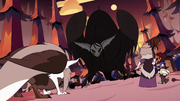 Simply every bit she promised, Lilith and some fill-in from the Emperor's Coven endeavor a raid on the Owl Firm, simply neglect miserably thanks to the efforts of Hooty, who unmarried-handedly took out the raid party. Utterly humiliated, Lilith is called back to the Emperor'south Castle, as the Emperor himself demands her presence. Emperor Belos grows impatient with Lilith'southward multiple failed attempts at capturing Eda, and gives her an ultimatum; should she neglect to capture her sister by twilight, she would be expelled from the Emperor'due south Coven, exist labeled a criminal, and exist executed.