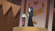 During their adolescent years, both Lilith and Eda wanted to join the Emperor'southward Coven together, simply unfortunately, there was but one open spot remaining, and a witches' duel would be held to decide the winner. Though Lilith was more studious than her rebellious younger sis, Eda was yet a hard-working and powerful witch, to the point where she surpassed Lilith in power. This gap in ability prompted Lilith to discreetly curse Eda in order to win the Emperor's Coven tryouts, though Lilith was unaware of the severity of the expletive at the time, instead assertive that information technology would only take abroad Eda's powers for a day and that by joining the coven, she would finally earn acknolwedgement from her mother. On the day of the tryouts, Eda willingly forfeited the duel, and Lilith joined the Emperor's Coven by default.[three] Unfortunately for Lilith, Gwendolyn was not nowadays for her coven initiation.[ii]